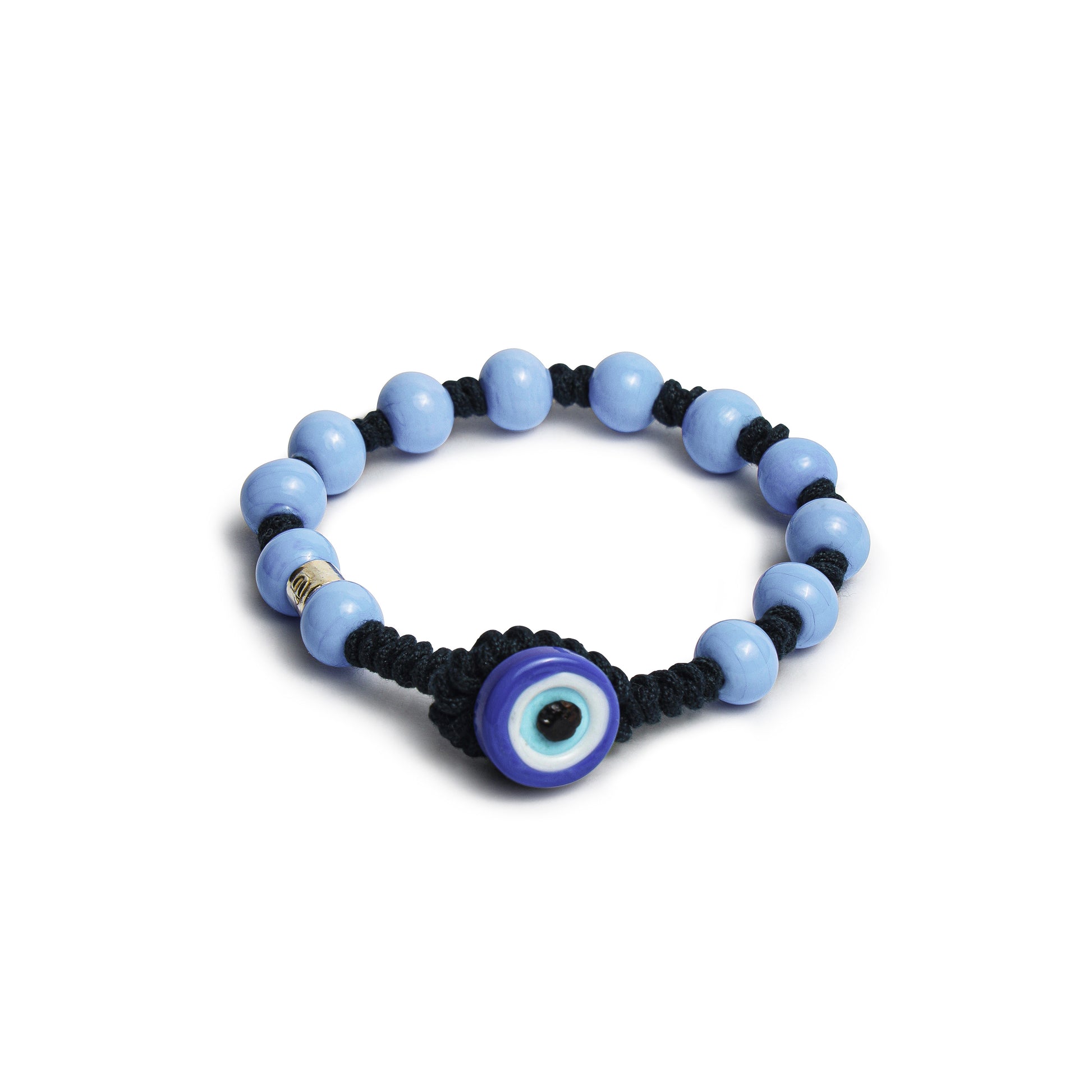 BRACCIALE IN CORDINO IN POLIESTERE RICICLATO CON ELEMENTI DI VETRO DI MURANO DA 8 MM E ARGENTO 925.