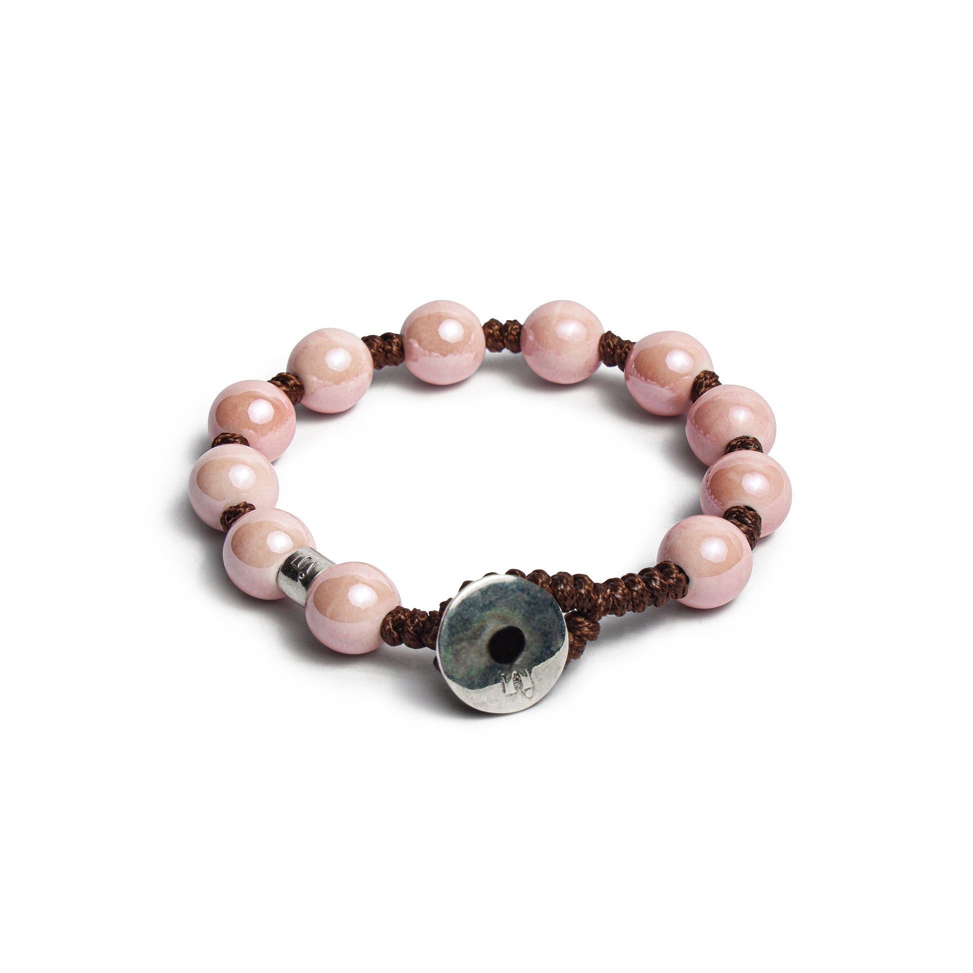 BRACCIALE IN CORDINO CERATO CON ELEMENTI DI CERAMICA DA 10 MM E ARGENTO 925.