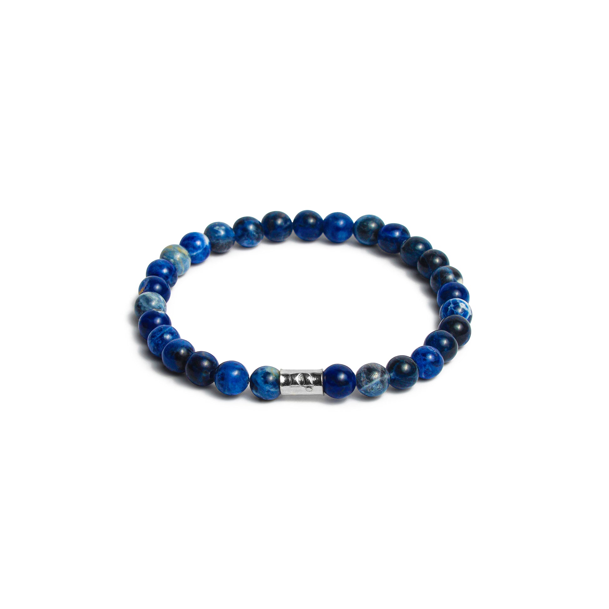BRACCIALE ELASTICO CON ELEMENTI DI SODALITE DA 6 MM E ARGENTO 925.