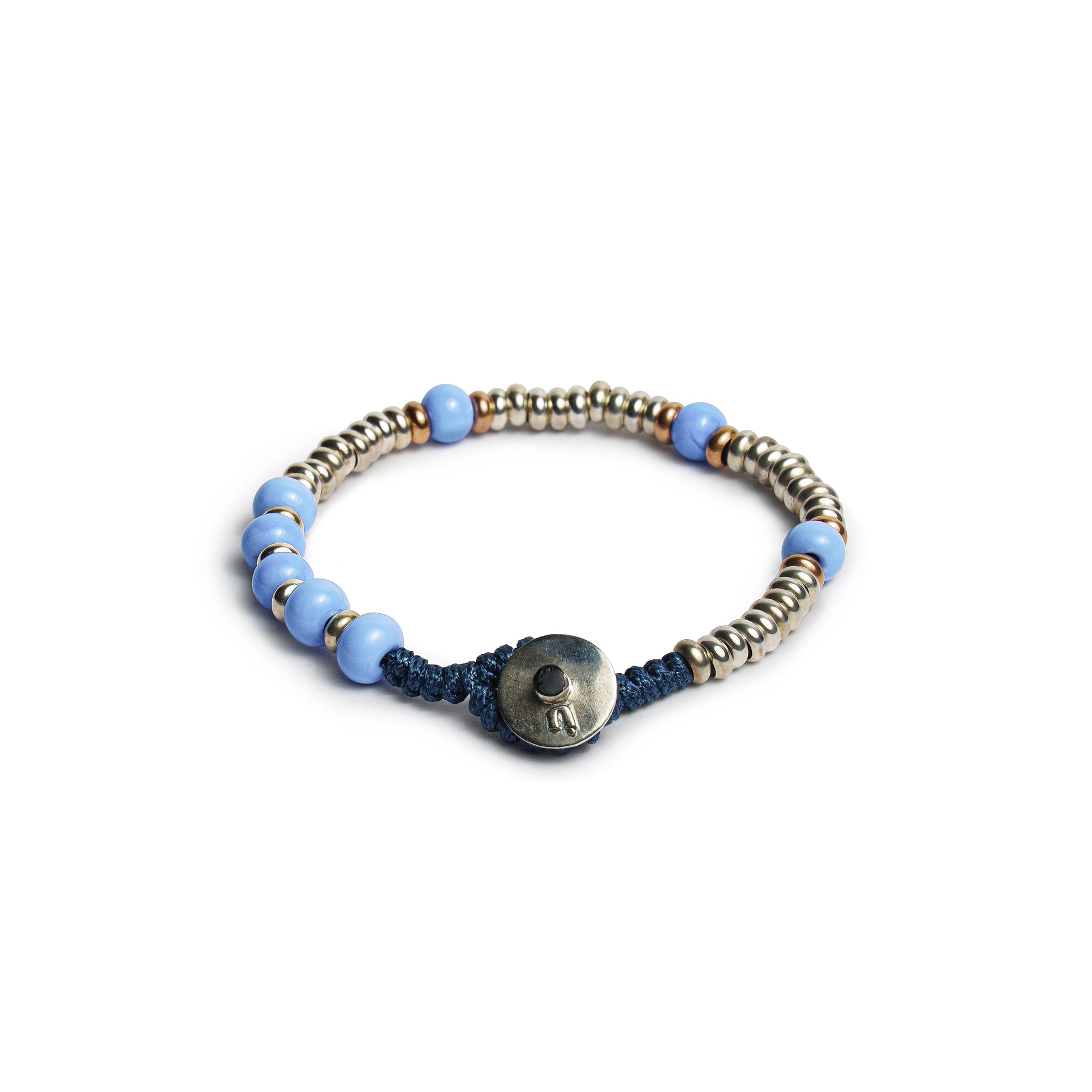 BRACCIALE IN CORDINO CERATO CON ELEMENTI DI VETRO DI MURANO DA 6 MM E ARGENTO 925.