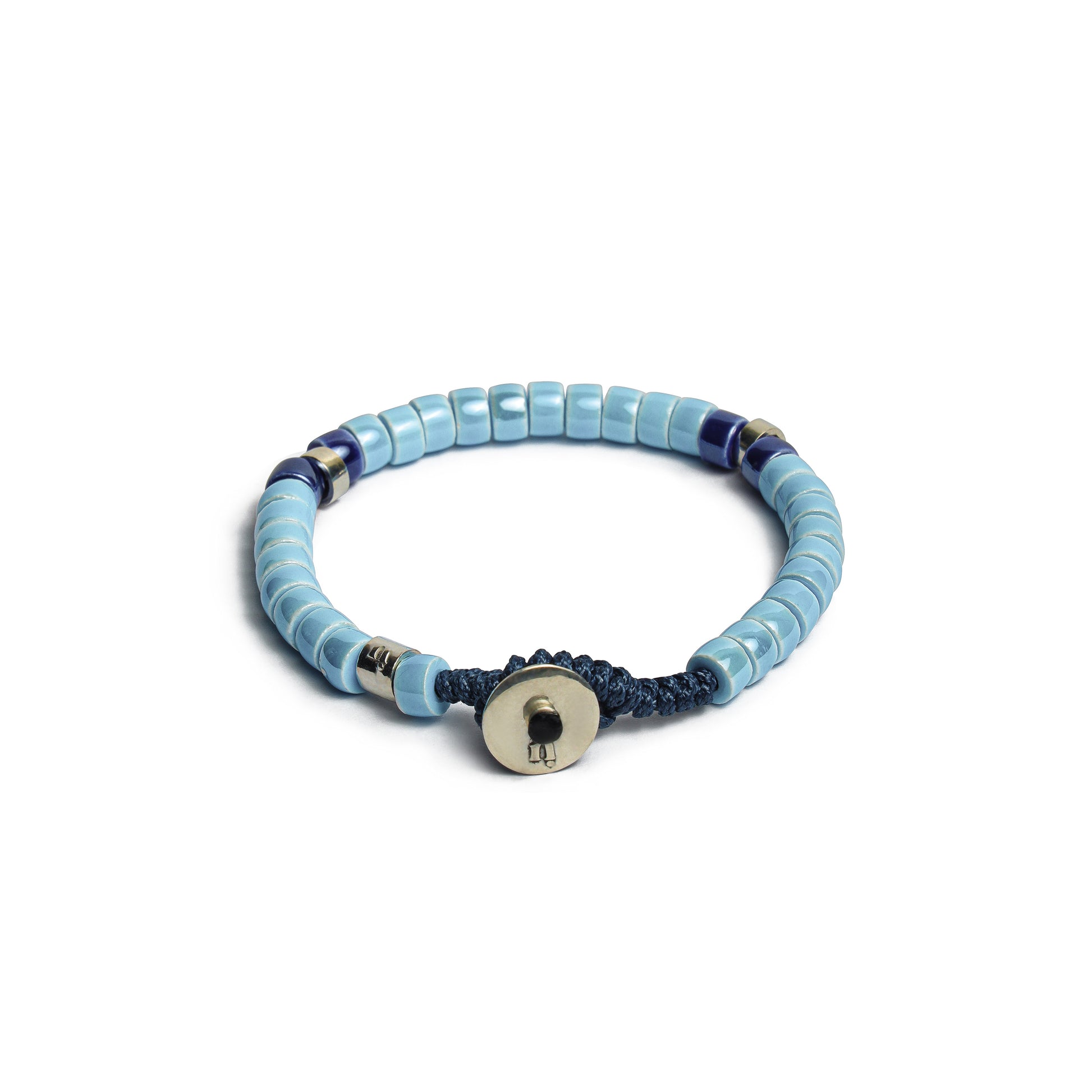 BRACCIALE IN CORDINO CERATO CON ELEMENTI DI CERAMICA DA 6 MM E ARGENTO 925.