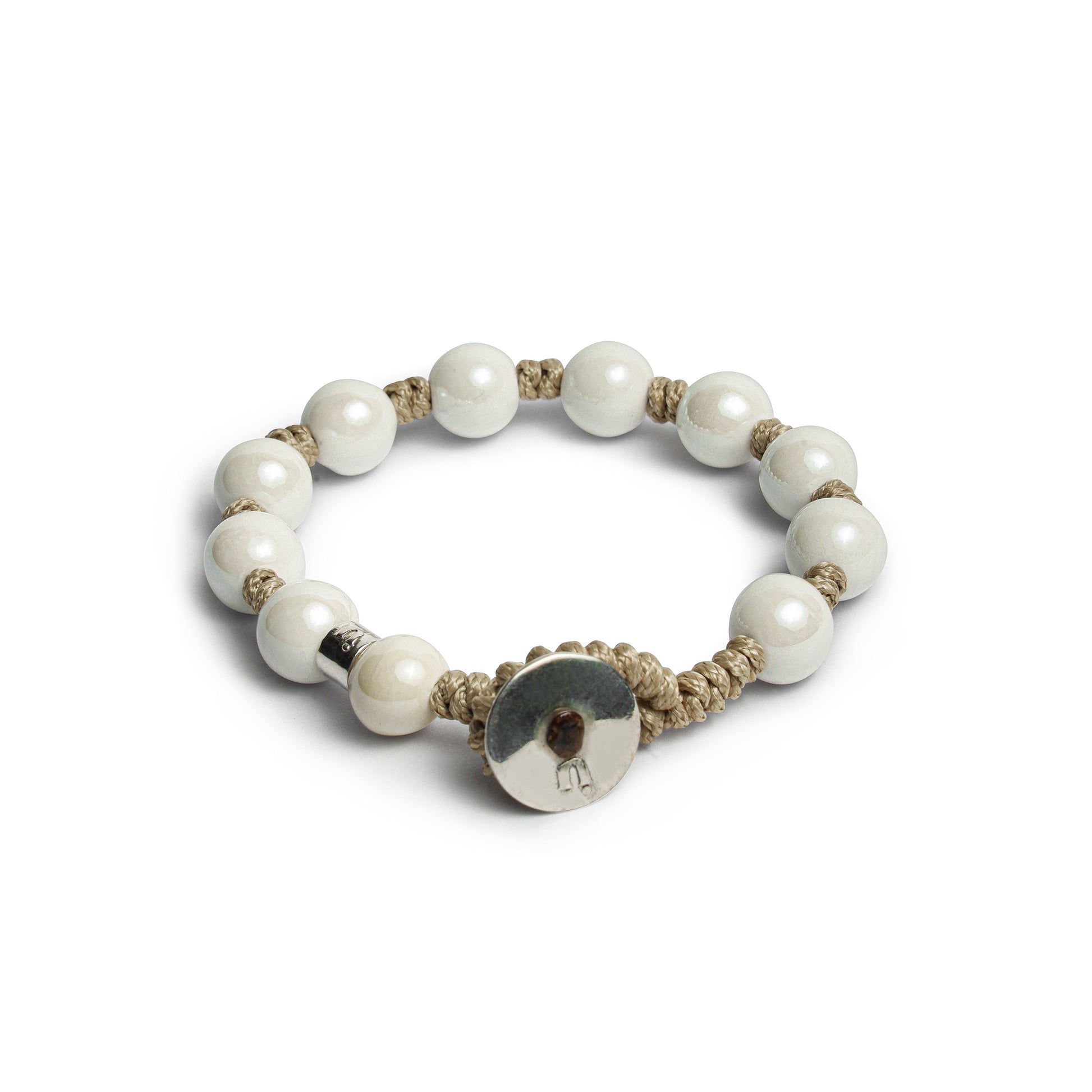 BRACCIALE IN CORDINO CERATO CON ELEMENTI DI CERAMICA DA 10 MM E ARGENTO 925.