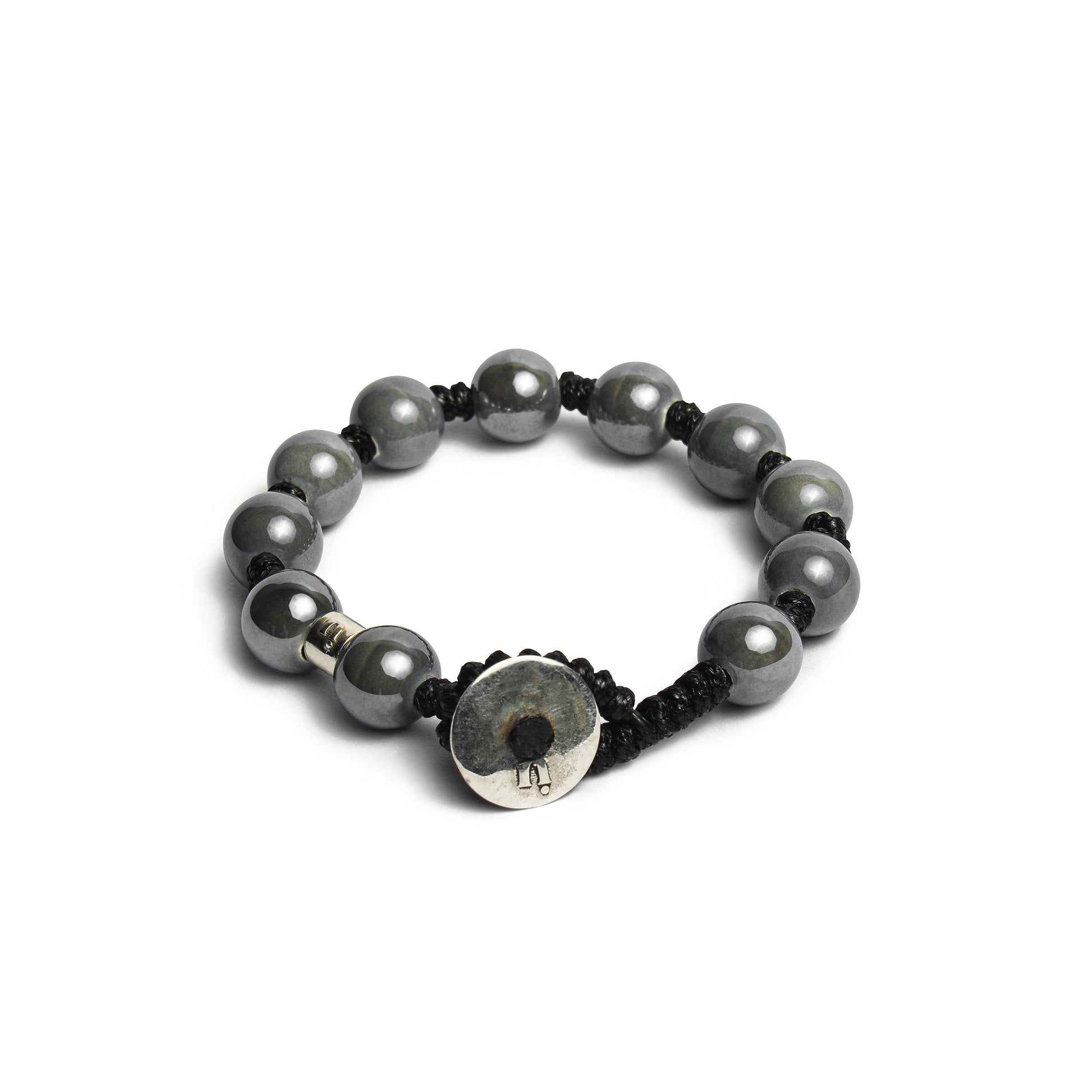 BRACCIALE IN CORDINO CERATO CON ELEMENTI DI CERAMICA DA 10 MM E ARGENTO 925.
