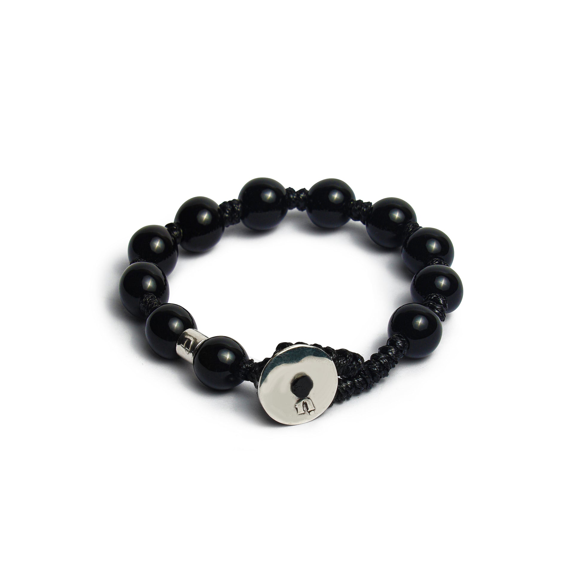 BRACCIALE IN CORDINO CERATO CON ELEMENTI DI CERAMICA DA 10 MM E ARGENTO 925.