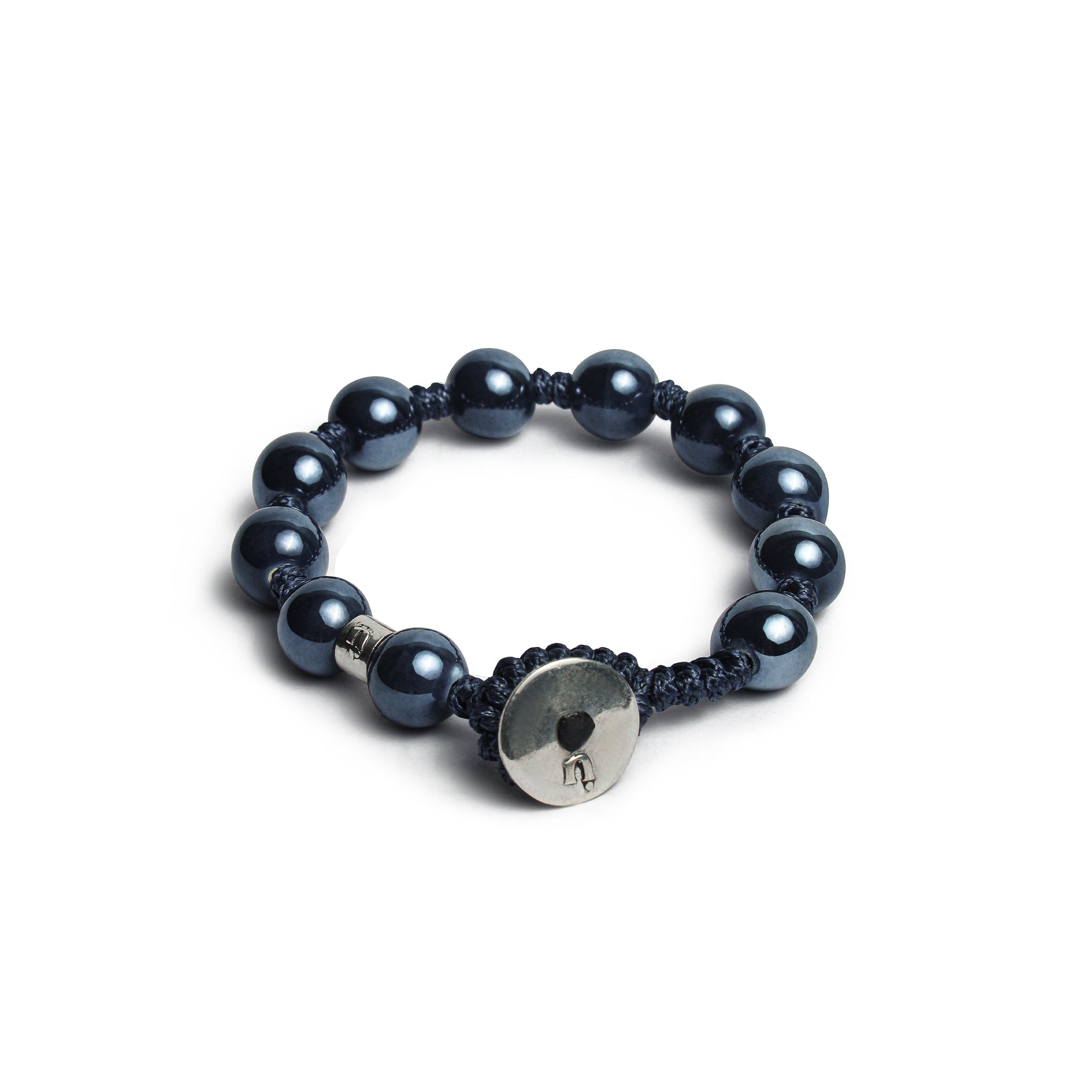 BRACCIALE IN CORDINO CERATO CON ELEMENTI DI CERAMICA DA 10 MM E ARGENTO 925.