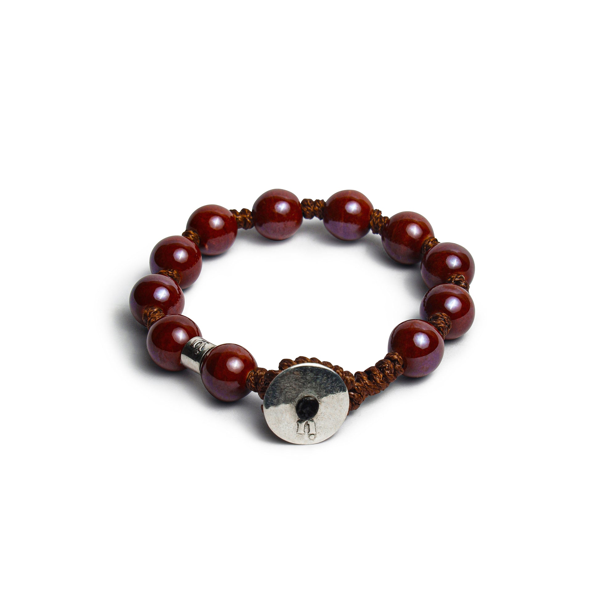 BRACCIALE IN CORDINO CERATO CON ELEMENTI DI CERAMICA DA 10 MM E ARGENTO 925.