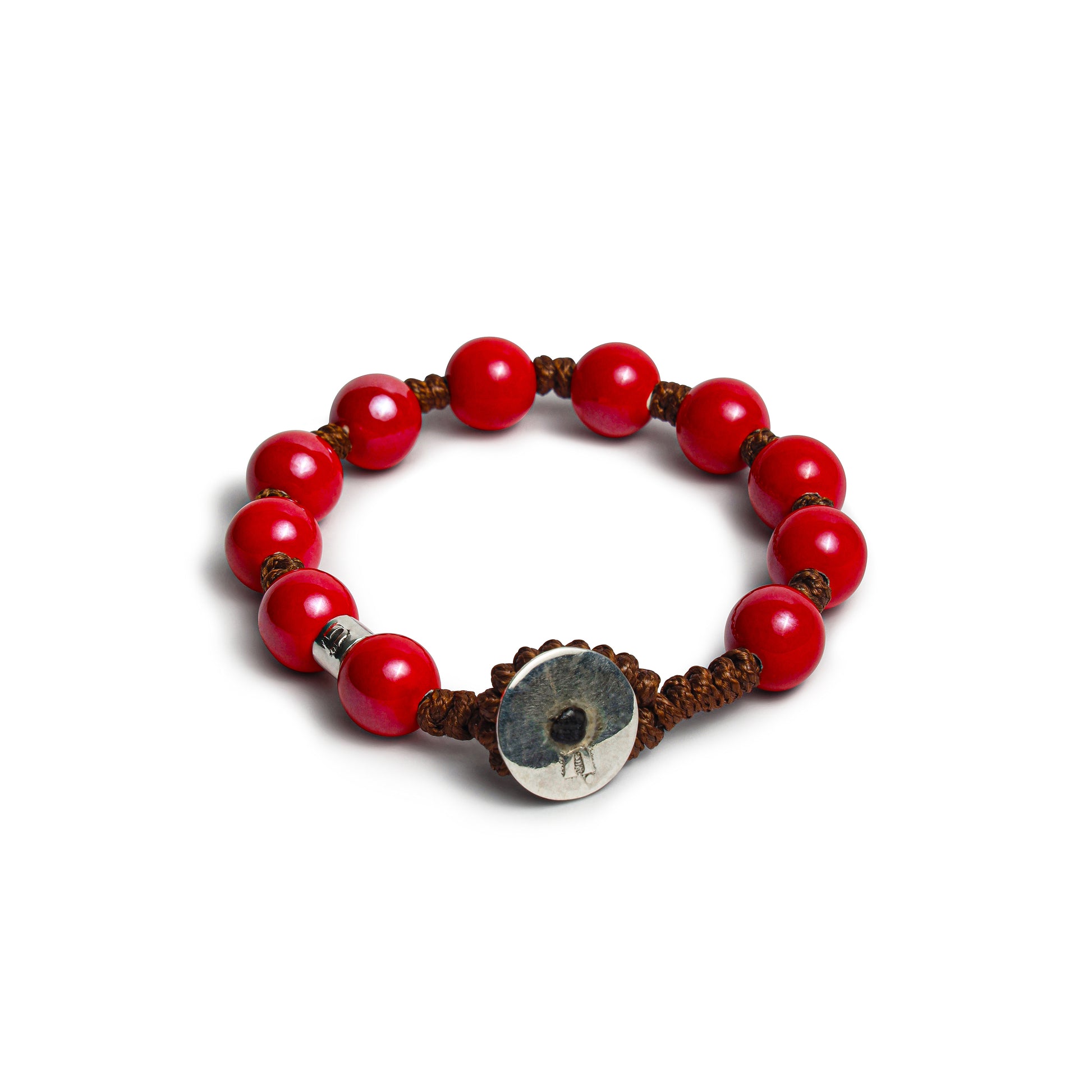 BRACCIALE IN CORDINO CERATO CON ELEMENTI DI CERAMICA DA 10 MM E ARGENTO 925.