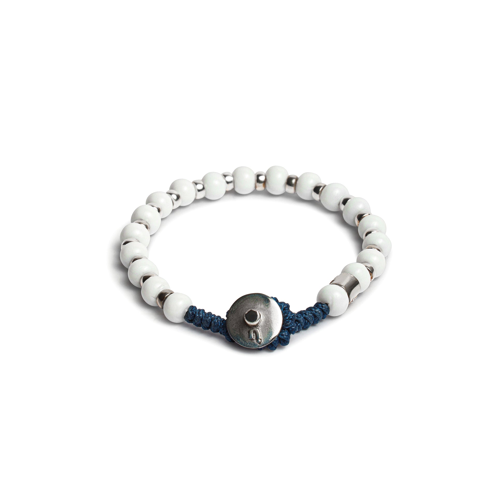 BRACCIALE IN CORDINO CERATO CON ELEMENTI DI VETRO DI MURANO DA 6 MM E ARGENTO 925.