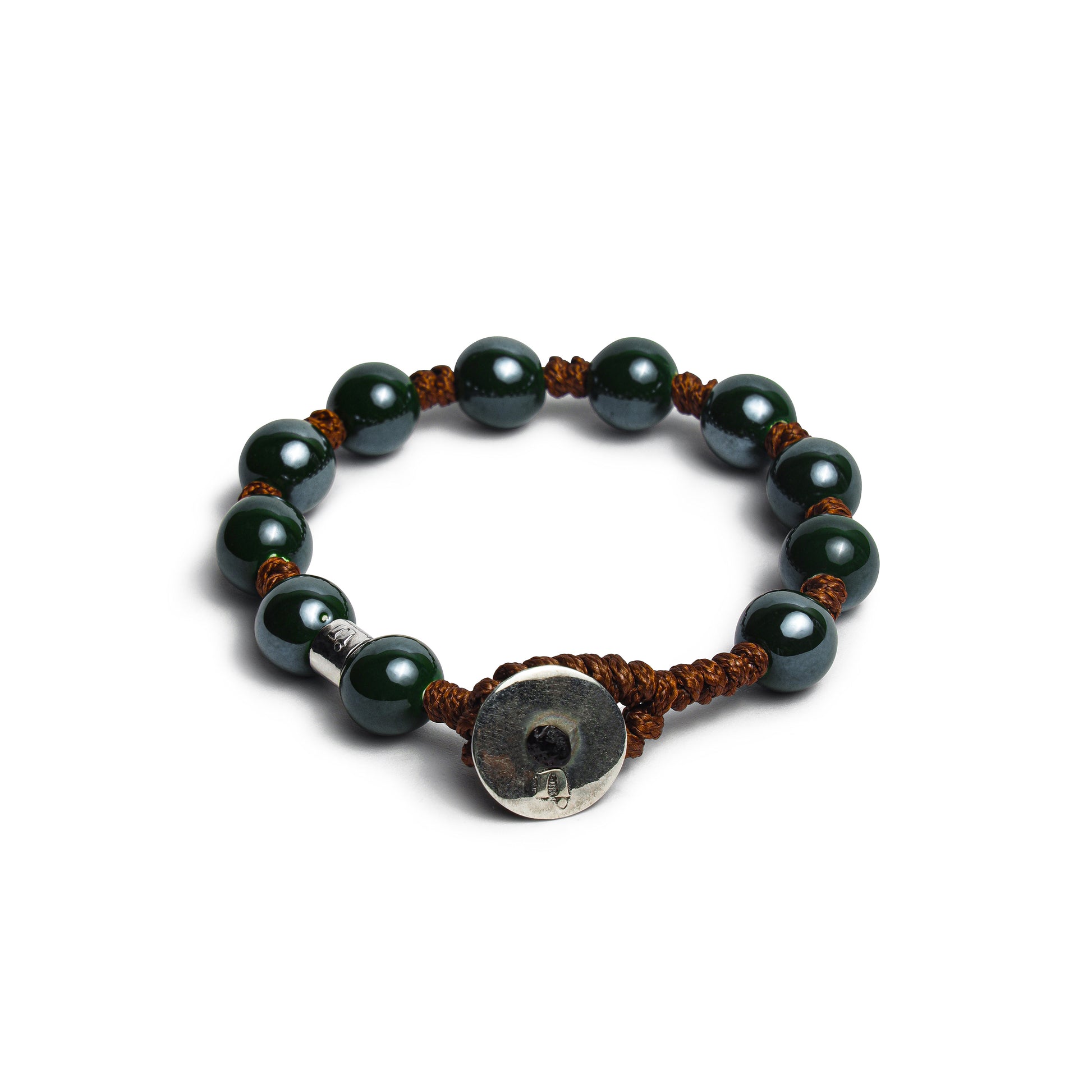 BRACCIALE IN CORDINO CERATO CON ELEMENTI DI CERAMICA DA 10 MM E ARGENTO 925.