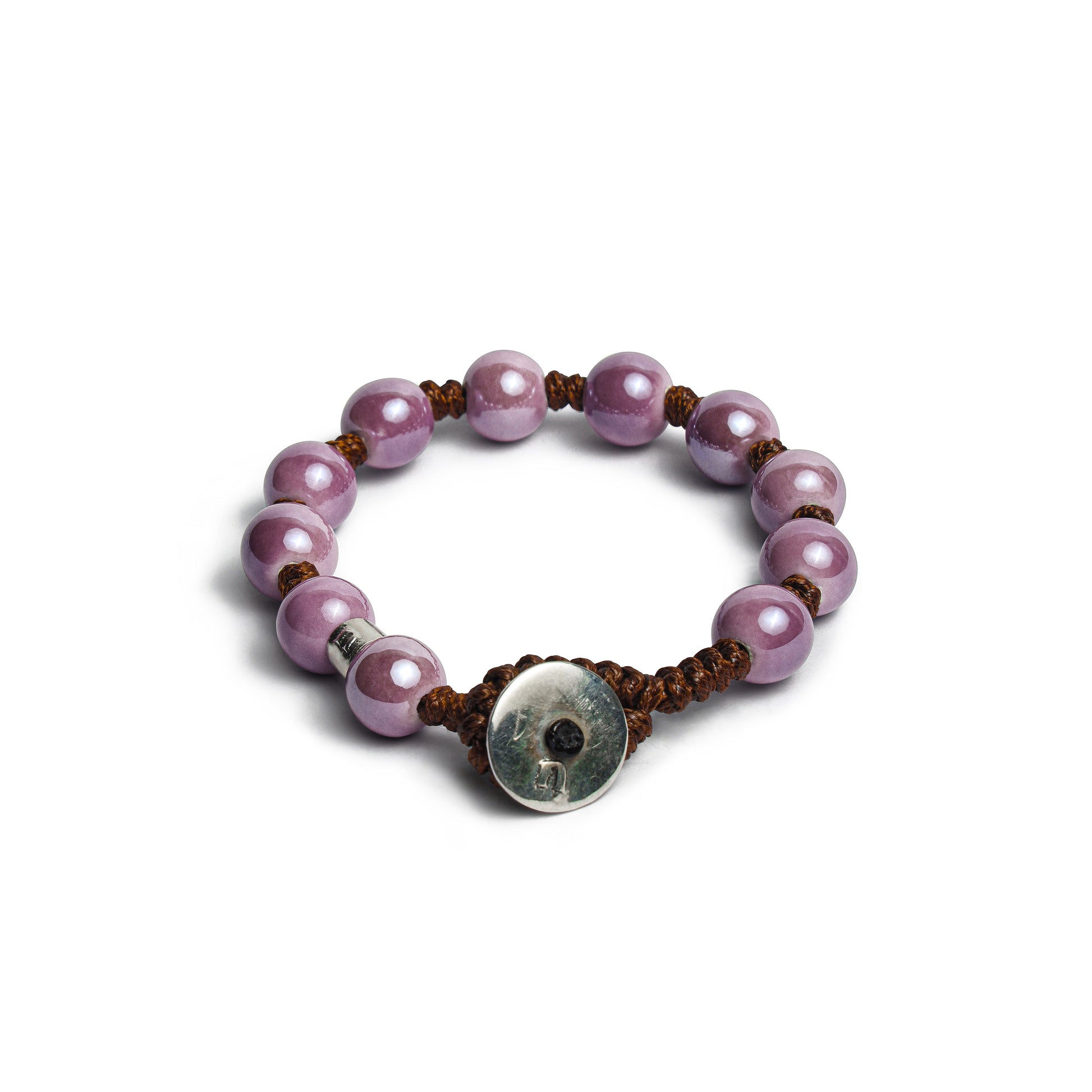 BRACCIALE IN CORDINO CERATO CON ELEMENTI DI CERAMICA DA 10 MM E ARGENTO 925.