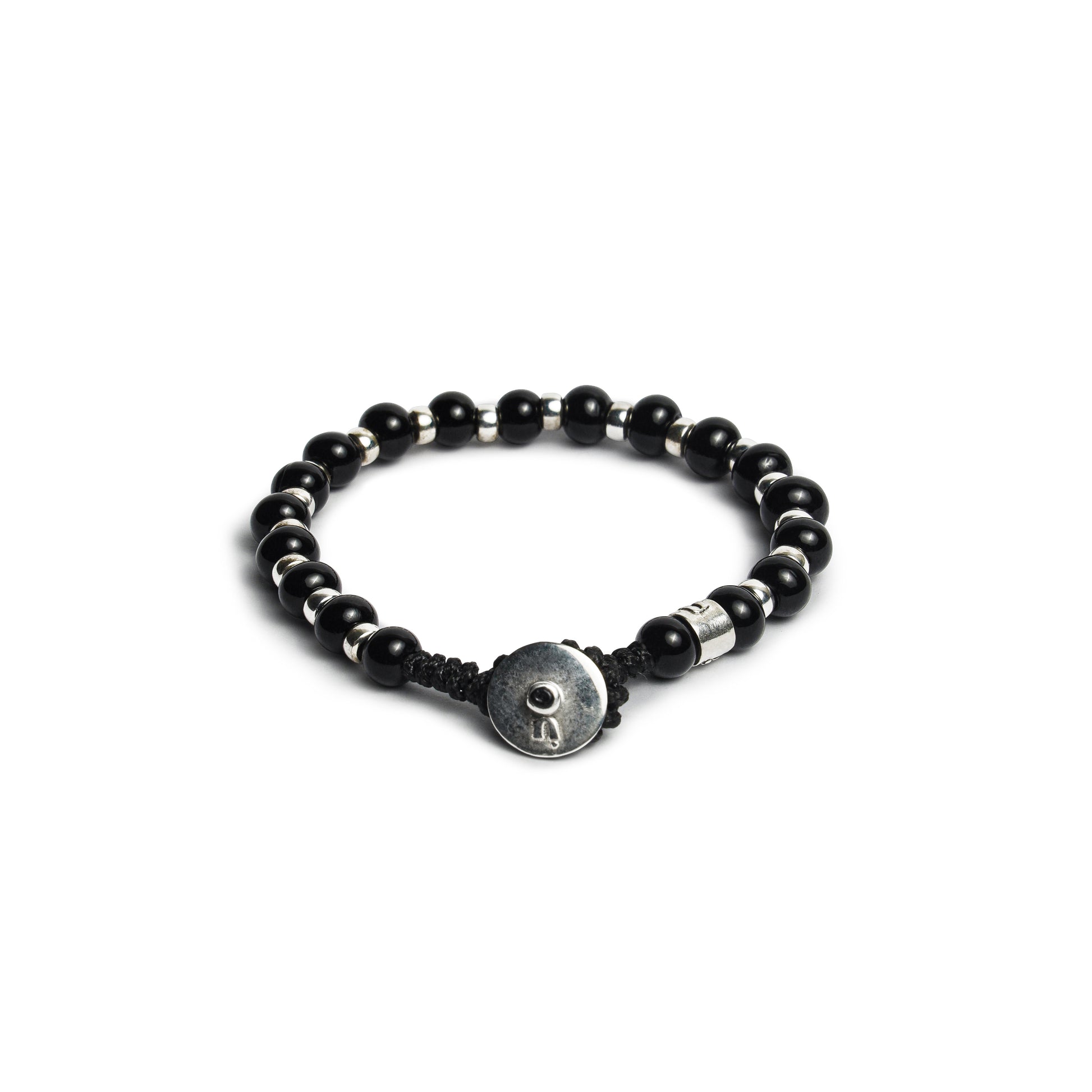 BRACCIALE IN CORDINO CERATO CON ELEMENTI DI VETRO DI MURANO DA 6 MM E ARGENTO 925.