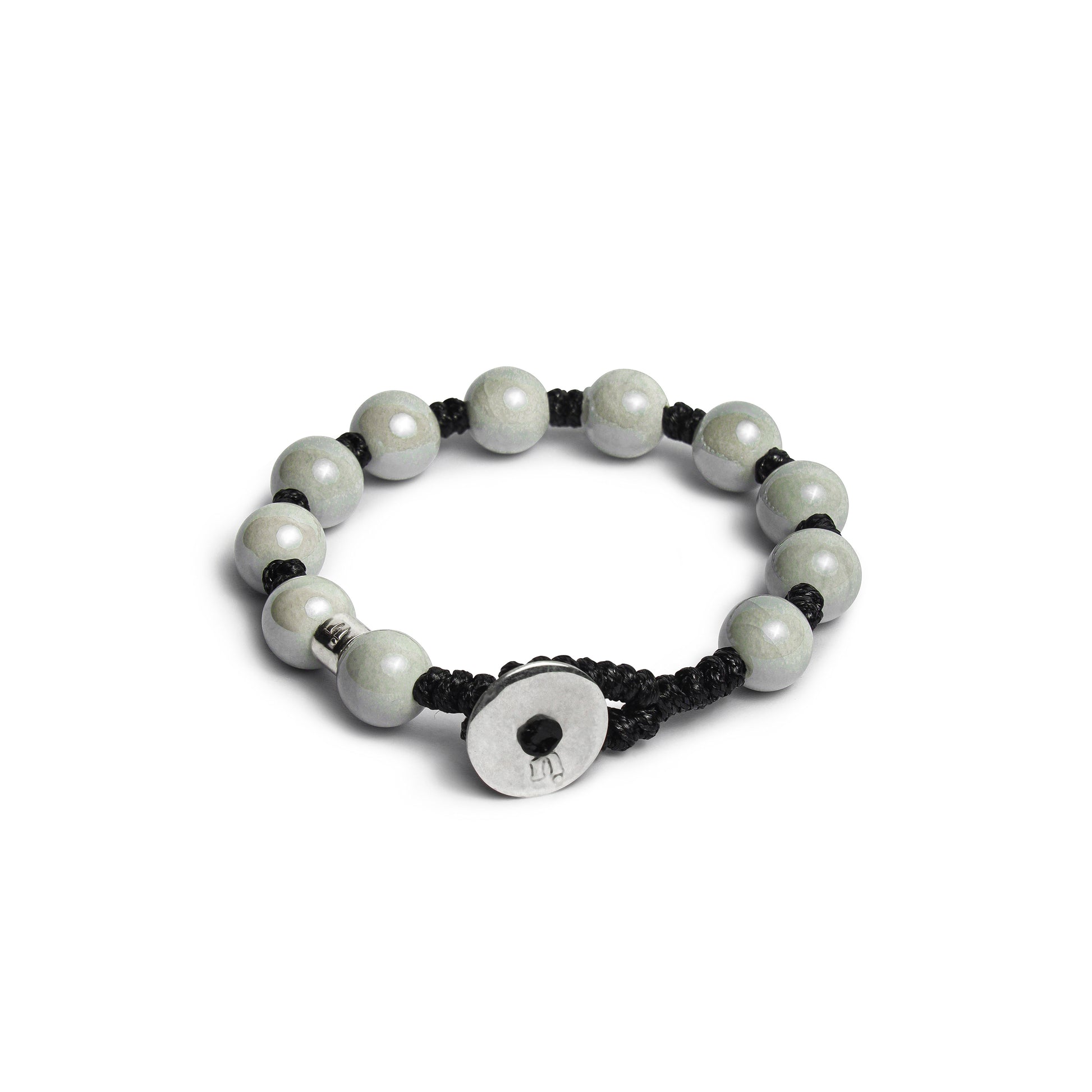 BRACCIALE IN CORDINO CERATO CON ELEMENTI DI CERAMICA DA 10 MM E ARGENTO 925.