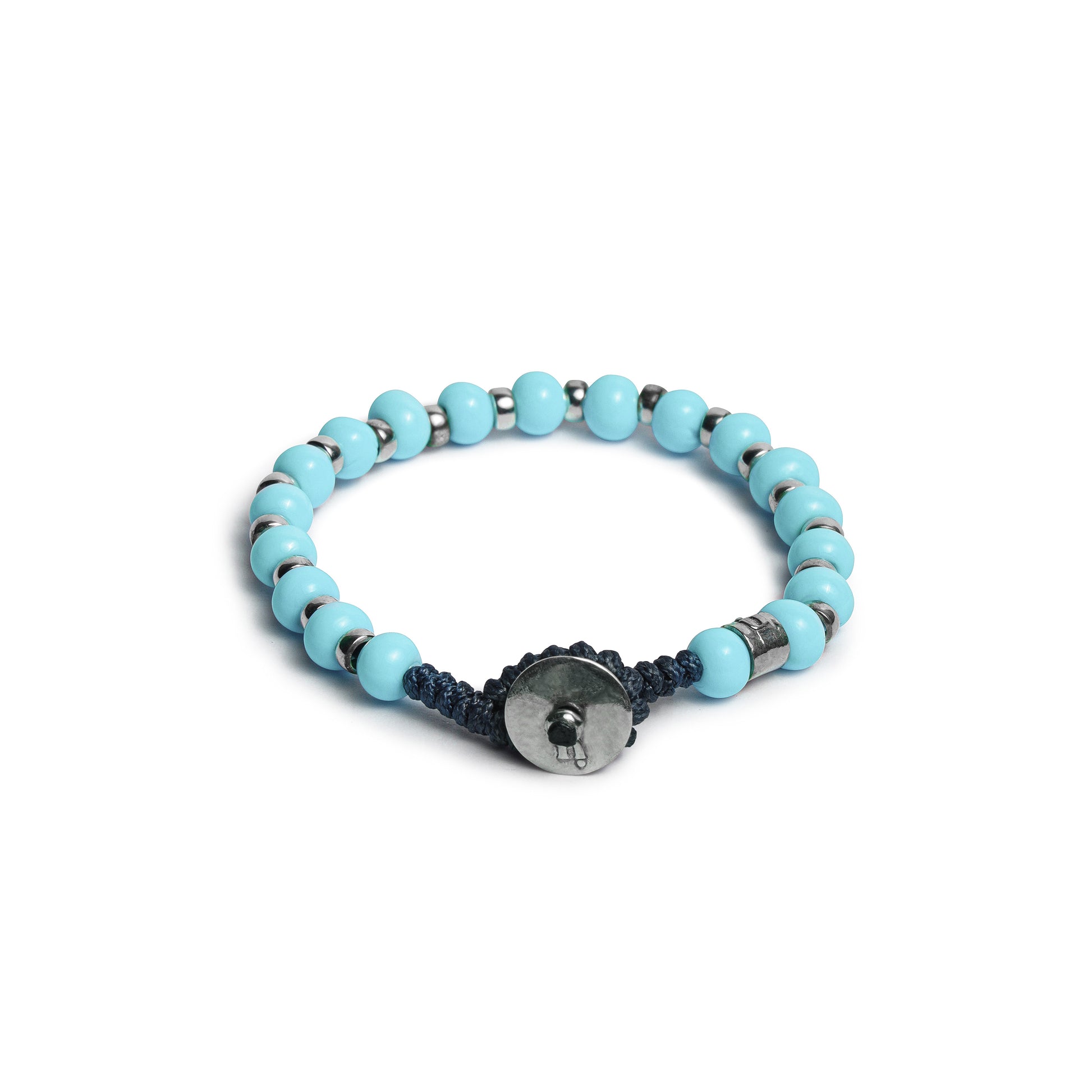 BRACCIALE IN CORDINO CERATO CON ELEMENTI DI VETRO DI MURANO DA 6 MM E ARGENTO 925.