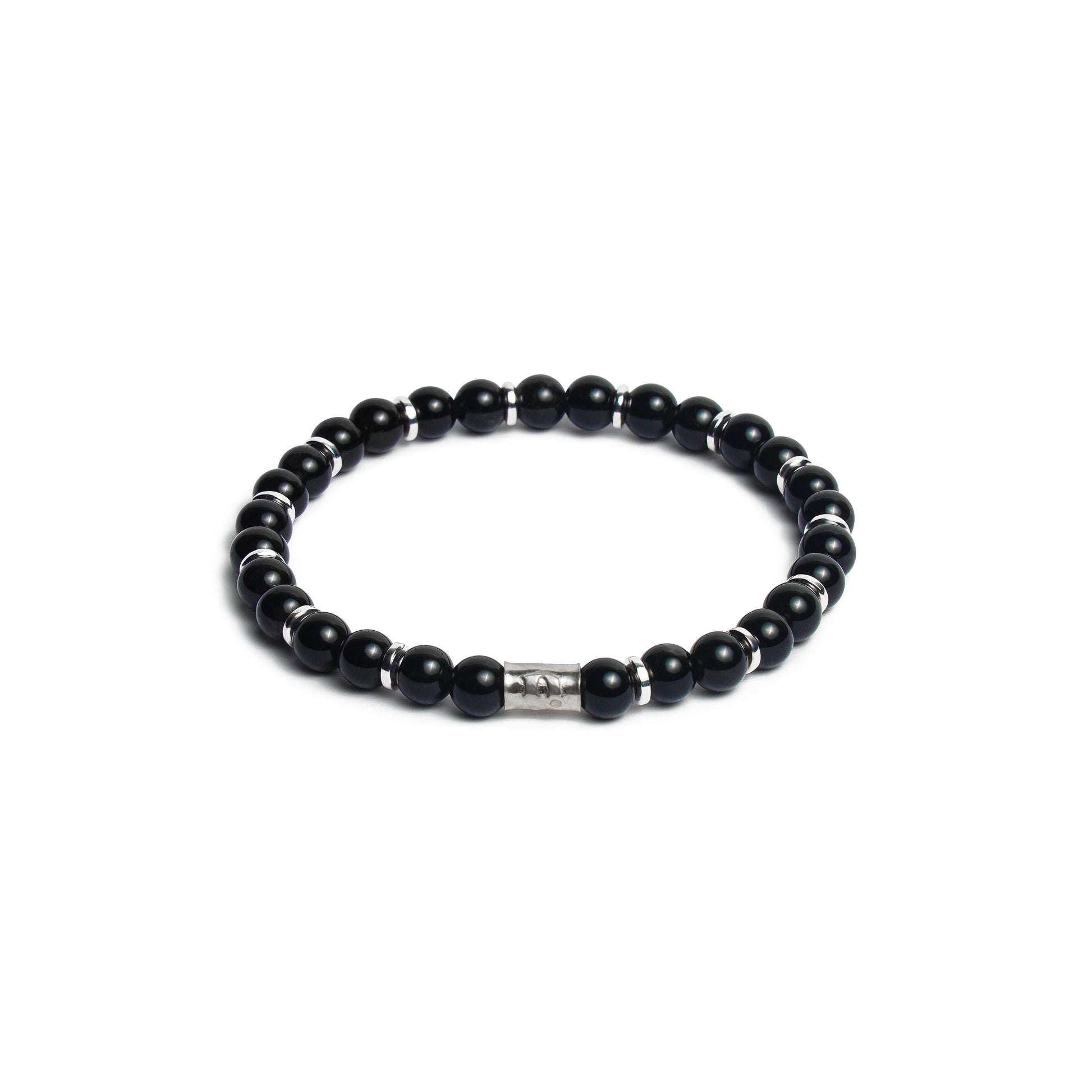 BRACCIALE ELASTICO CON ELEMENTI DI ONICE NERA LUCIDA DA 6 MM E ARGENTO 925.
