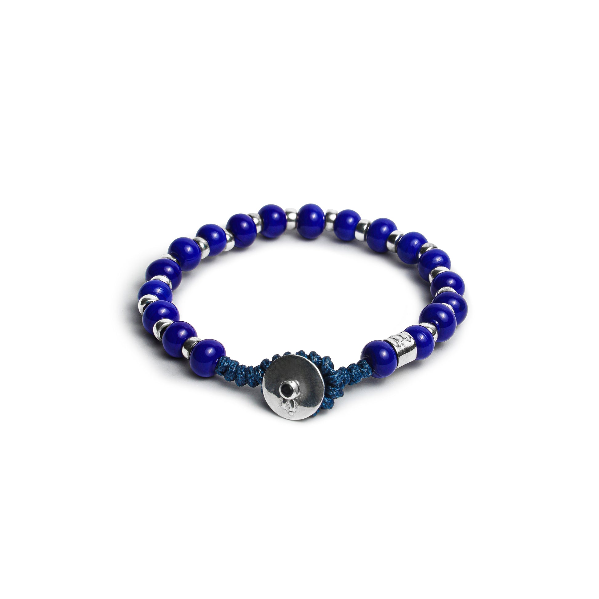 BRACCIALE IN CORDINO CERATO CON ELEMENTI DI VETRO DI MURANO DA 6 MM E ARGENTO 925.