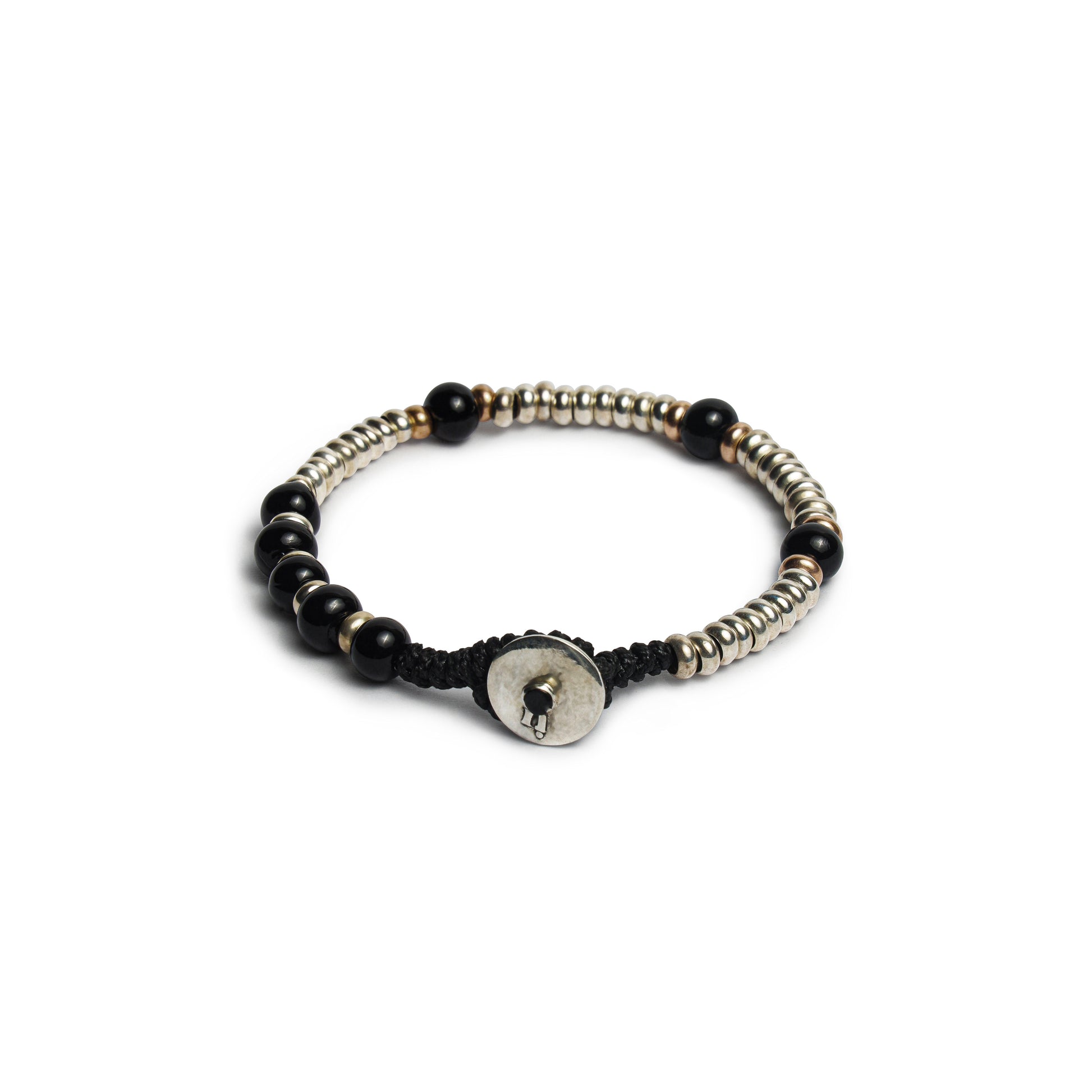 BRACCIALE IN CORDINO CERATO CON ELEMENTI DI VETRO DI MURANO DA 6 MM E ARGENTO 925.