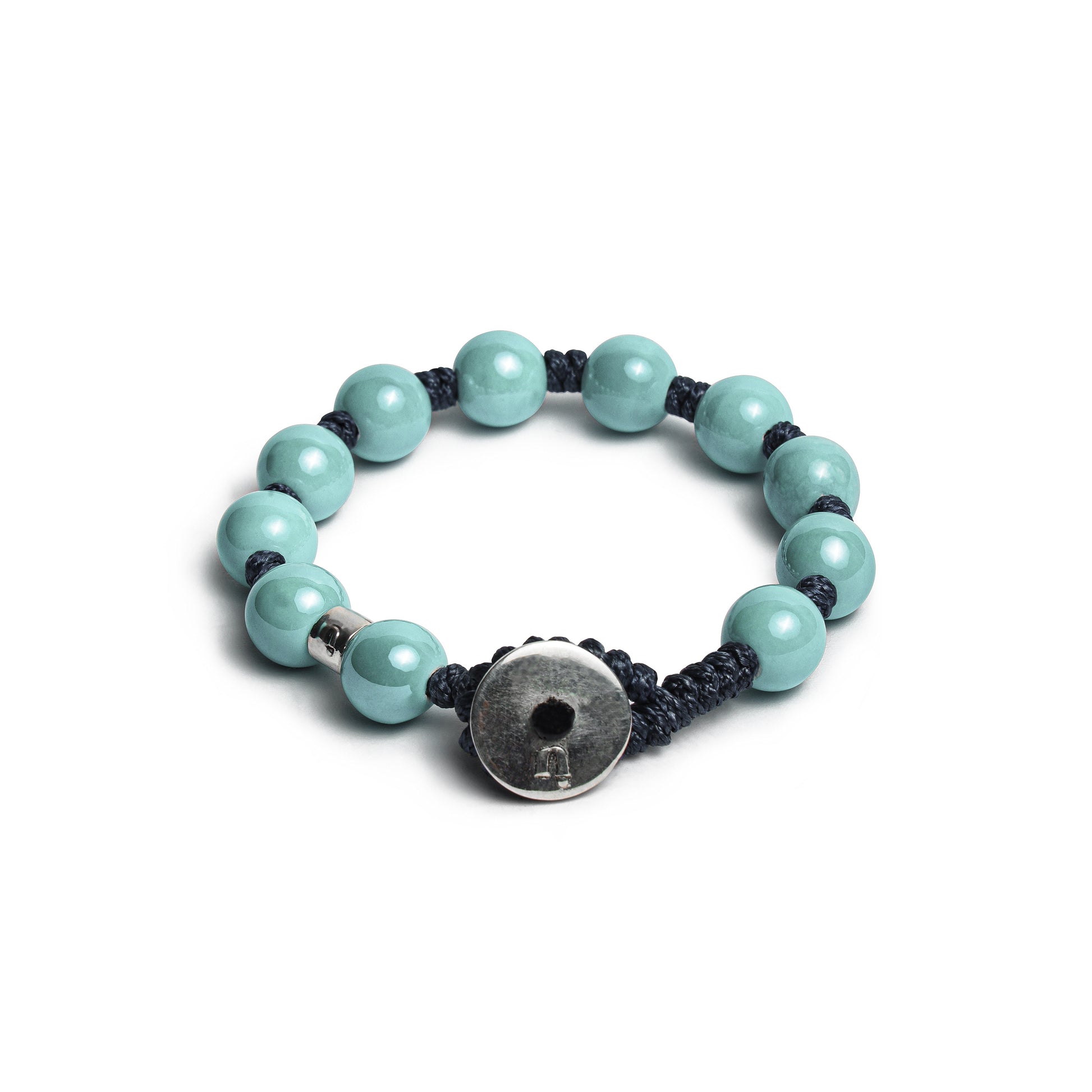 BRACCIALE IN CORDINO CERATO CON ELEMENTI DI CERAMICA DA 10 MM E ARGENTO 925.