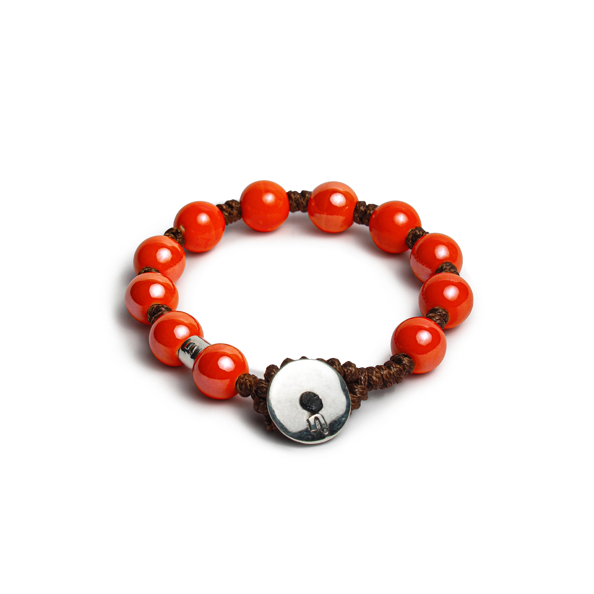 BRACCIALE IN CORDINO CERATO CON ELEMENTI DI CERAMICA DA 10 MM E ARGENTO 925.